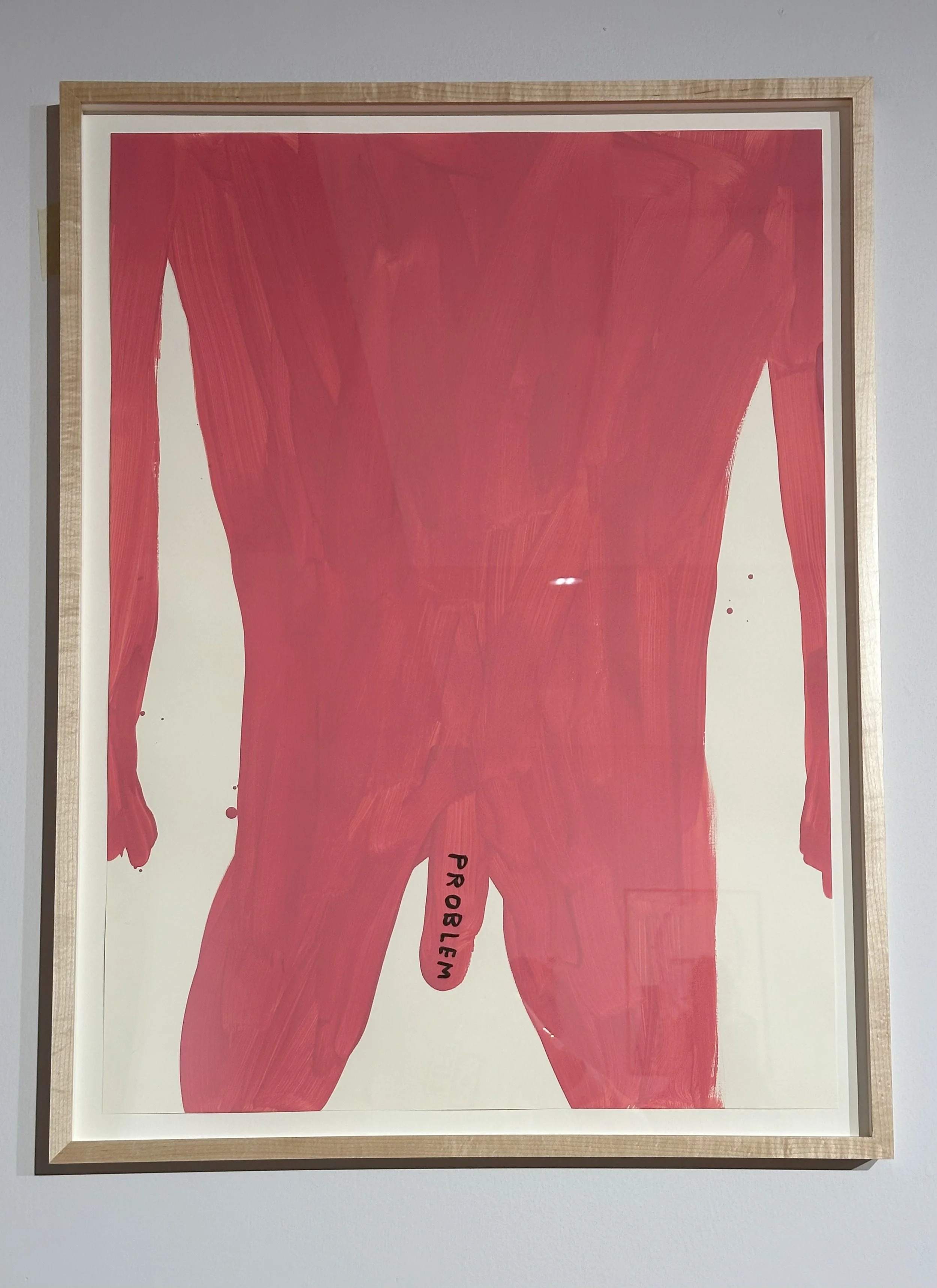 Bolstering the status of drawing requires mimicking the success of the pop culture sensation: TikTok – practical, immediate and short content. Upon entrance, David Shrigley’s eye-catching one-liners cover the wall. Flicking between the sixteen drawings presented, elitist art themes are subverted through his humorous take on the human form. Shrigley’s drawings become the epitome of ‘simple but effective’, using satire and child-like forms to expose the absurdity of human life. What could be argued as a lack of technique, only encourages us to all pick up a pencil regardless of our skill.