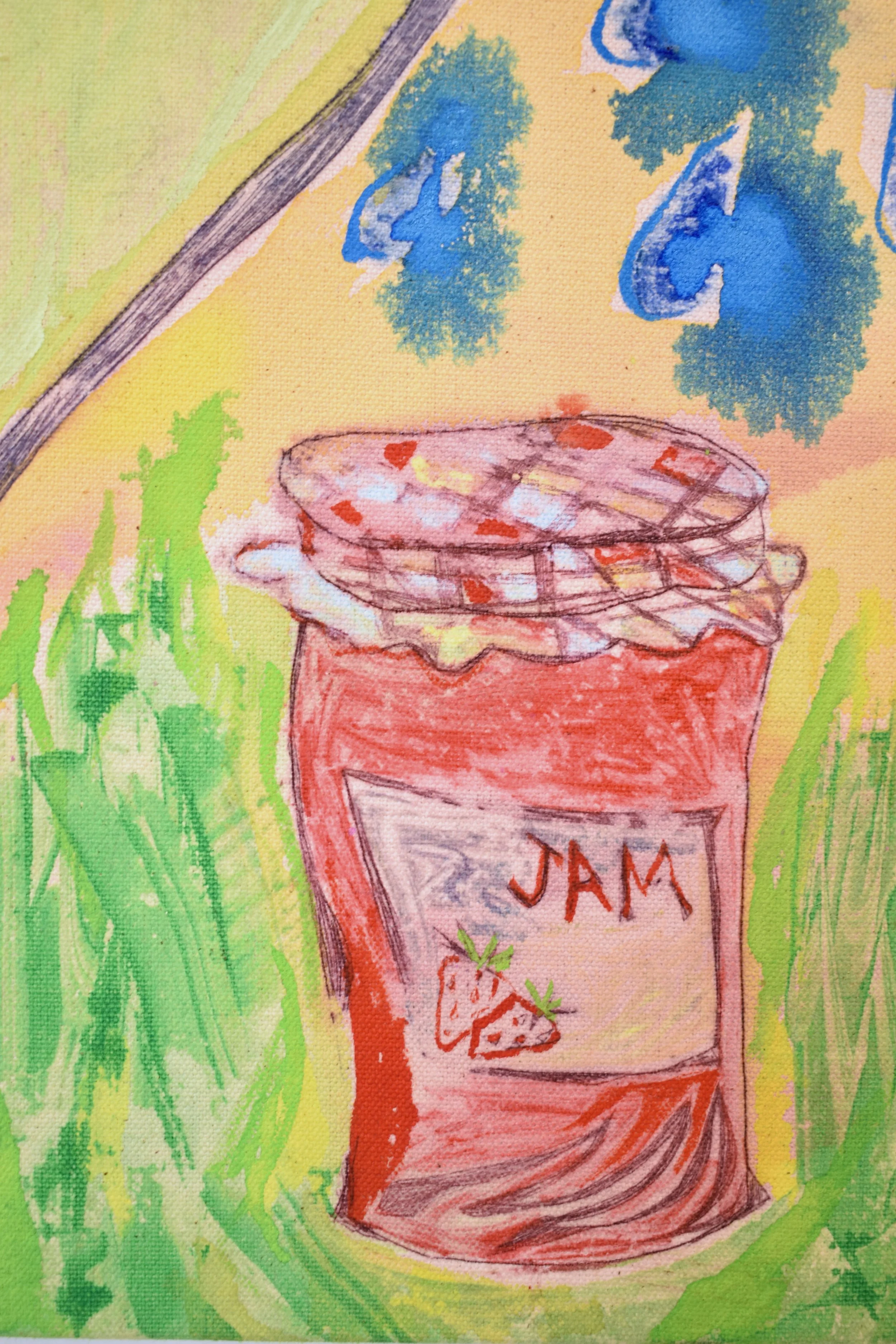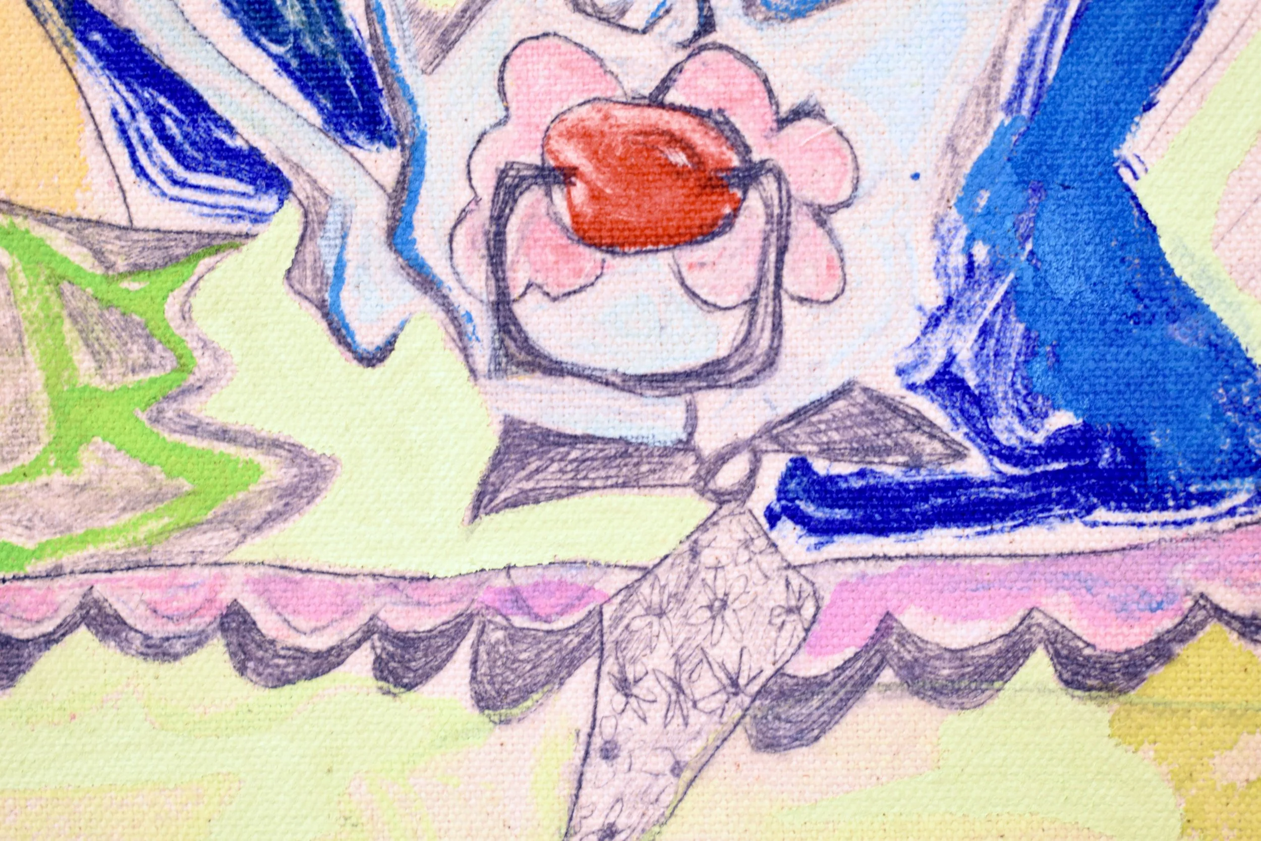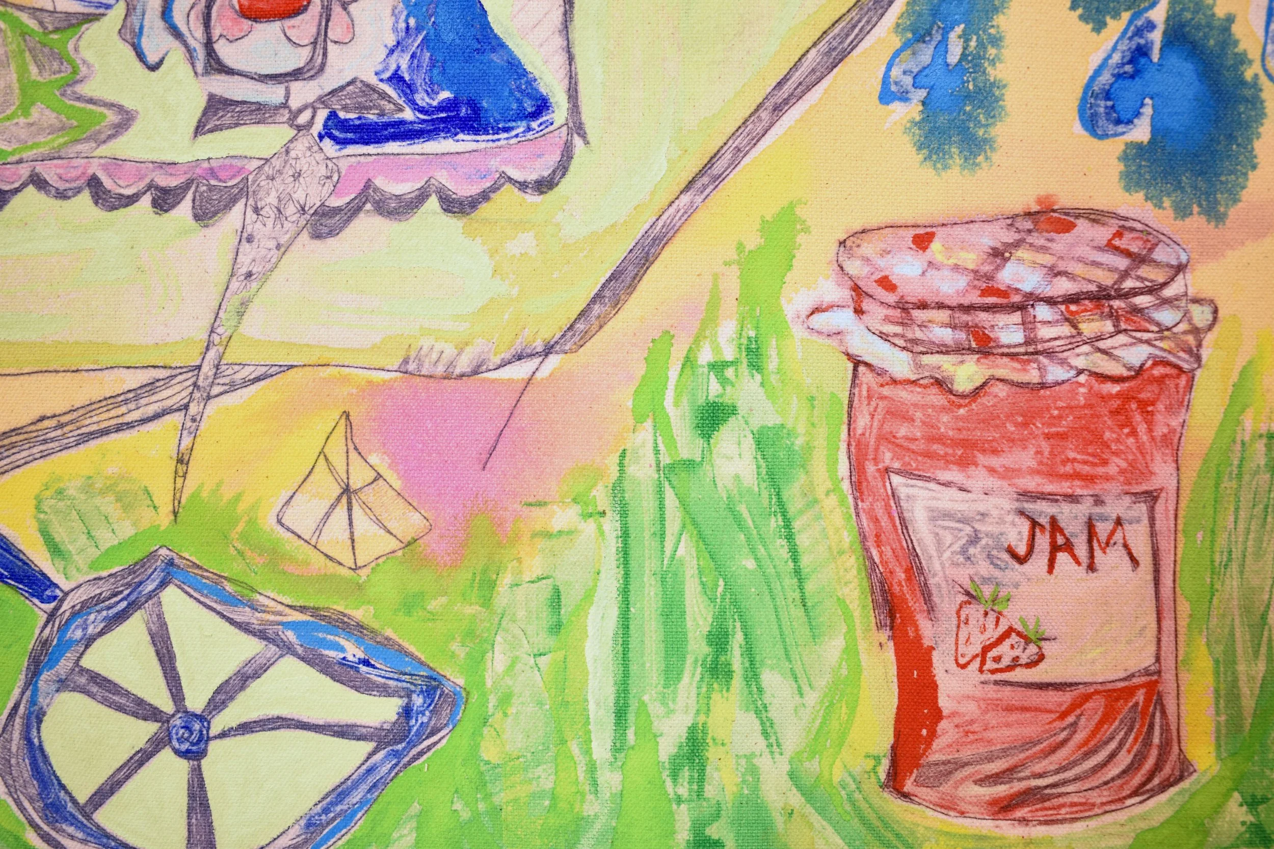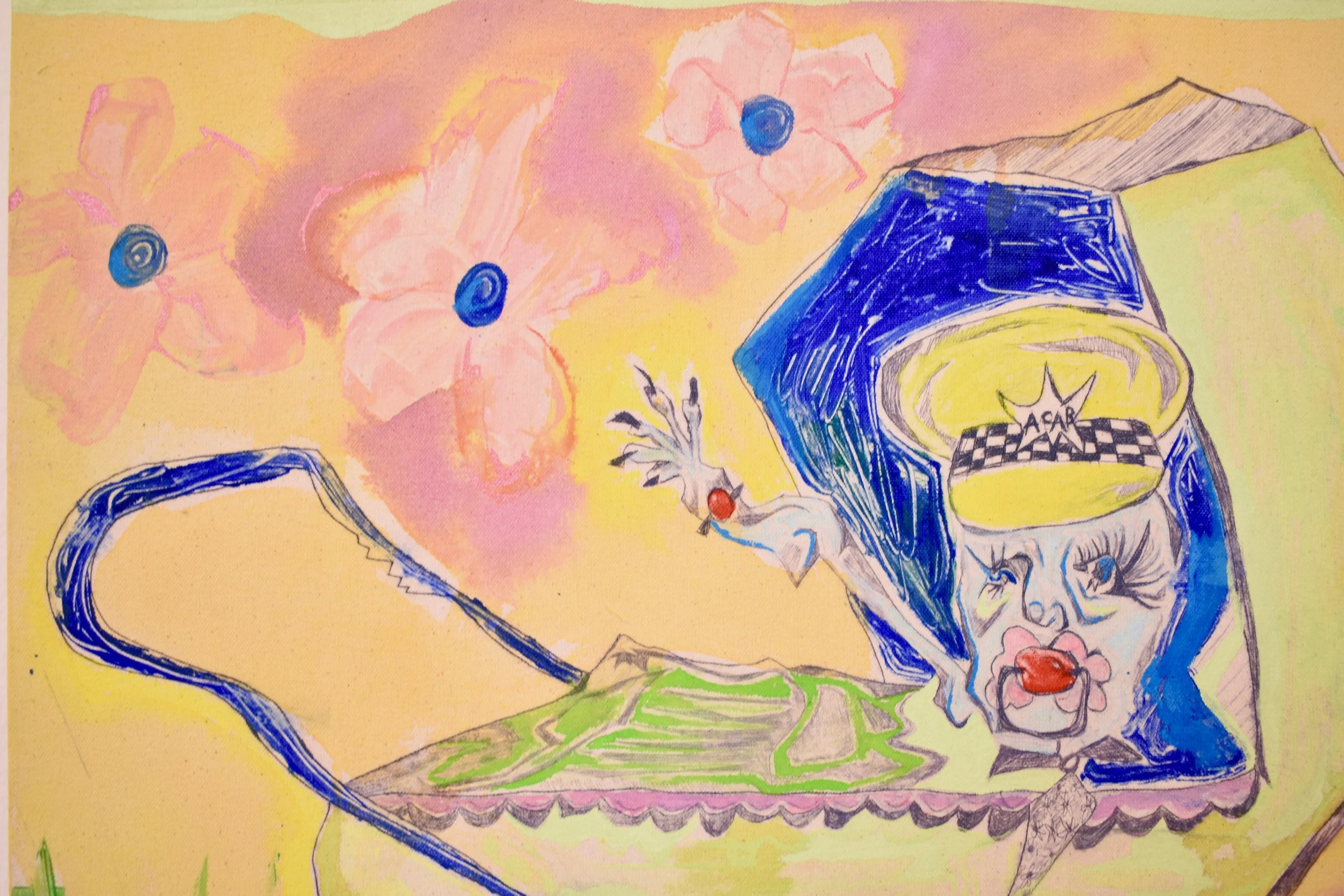 Policed from birth I (2025), stretched drypoint etching on canvas with acrylic and ink detailing, 62 x 43cm